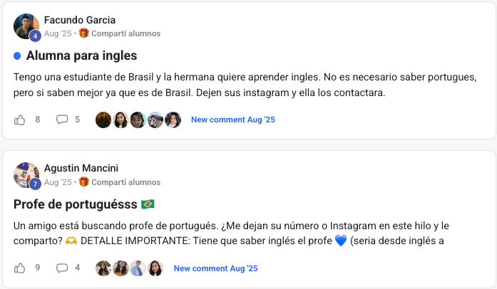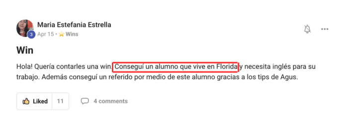 Antes: No tenía presencia en redes sociales y buscaba nuevos alumnos para su club de conversación.